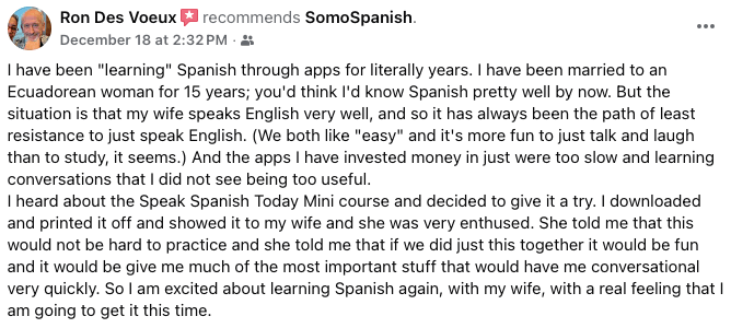➤ This is simply my way of giving back and providing the BEST Spanish Learning Course out there at a fraction of the cost with twice as much value, so it doesn't hurt me to share with you something I've spent years working on.