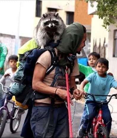 The next thing I asked was "how do I say, 'can you help us with some money?'" (People would take pictures with the raccoon and that's how we'd make money).